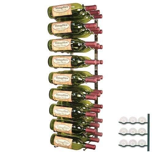 The Vintage 27-Bottle Wall Mounted Storage Rack will display your favorite wines right up against the wall. This storage rack is made of Metal and is available in the finish of your choice. This wine rack can store up to 27 bottles of wine with full view of the bottle labels, so you can easily find a particular bottle. This wine rack provides perfect airflow between bottles. Modular in design, this wine rack will work in virtually any space. Parts come fully assembled, which makes for easy installation - all you'll need to do is mount it to the wall! Holds up to 27 bottles. Mounts on wall. Your choice of colors. Metal construction . Spacing for air flow. Modular stacked bottle design. 7.5W x 12D x 36H inches.