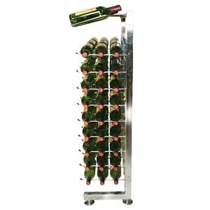 This sleek, contemporary wine rack is specifically designed to ensure the proper support for safely storing bottles. The convenient, horizontal display allows for easy viewing and identification. The wine rack includes a presentation display that holds nine bottles. The Freestanding Half Island Display extension rack holds 90 bottles of wine, just the right size if you need a little extra space for your wine. Because of the unique architecture of this wine rack the labels are easily visible on each bottle, the air circulation is improved around each bottle, and it creates the proper storage position for the wine so that wine-cork contact is maintained. This display includes two single side uprights, crossrails, single sided presentation rack and three WS33 racks.