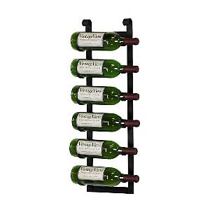 Vintage View has designed this rack while keeping elegant design in mind. This rustic black Vintage View 6 bottle* wine rack features scroll work on the top to finish off their most popular size with a little grace. As always this innovative racking system stores bottles with the labels facing out for a dynamic presentation and easy accessibility to the wine you want. Exceptionally flexible easy to install and surprisingly affordable stores from as few as 6 bottles to many thousands when used as a system. It also provides the perfect airflow between bottles. Size: 27'H x 8-1/2'W Bottle capacities are maximums when storing standard Bordeaux 750mL bottles.
